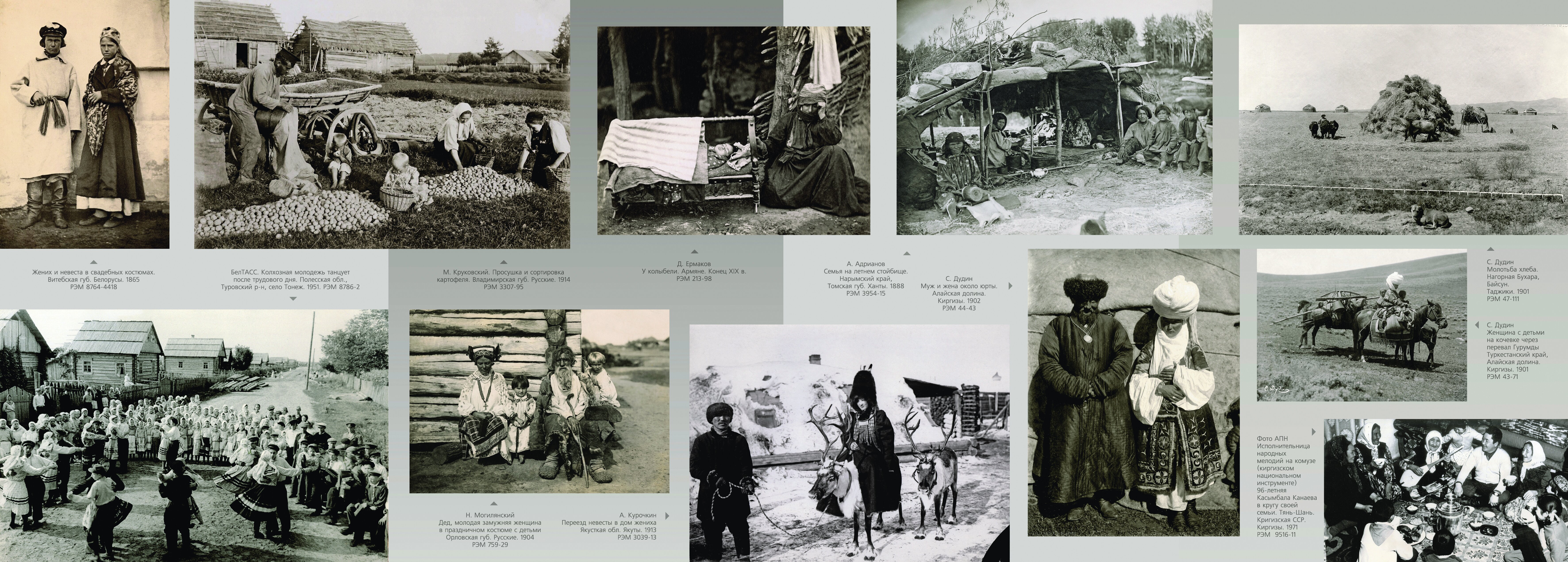 ХХ-кылым. Евразия калктарынын үй-бүлө маданияты аттуу фотокөргөзмө эки болүктөн турат. Биринчи болүктө факсимилдик фотосүрөттөр (булар жол-жоболоштурулган) ХХ-кылымда Орто-Азия, Кавказ, Сибирь, Поволжье аймактарында жашаган элдердин жана фин-угор элдеринин салттуу үй-бүлөнүн күнүмдүк жана майрамдык турмуштары менен тааныштырат. Үй бүлө жашоосунун ар түрдүү дүйнөсү менен портреттер, турмуштук сюжеттер, промыслолук, календардык, ошондой эле үй-бүлө ырым-жырымдары жана тойлору аркылуу таанышабыз.
