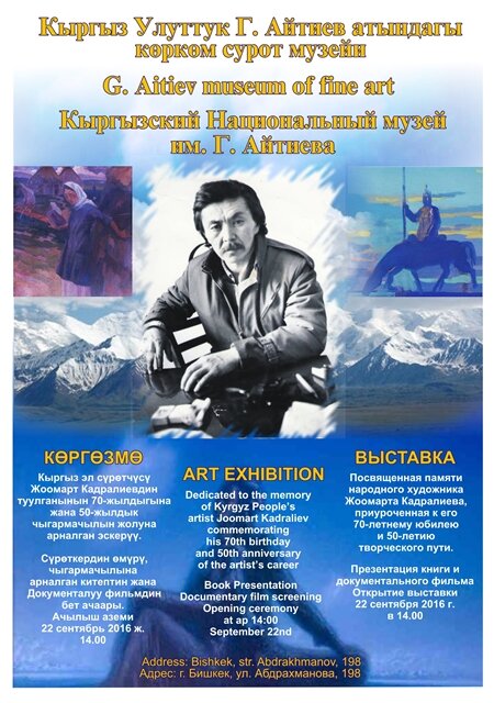 Открытие выставки состоится 22 сентября 2016 года в 14.00 в Кыргызском Национальном музее изобразительных искусств им. Г. Айтиева.